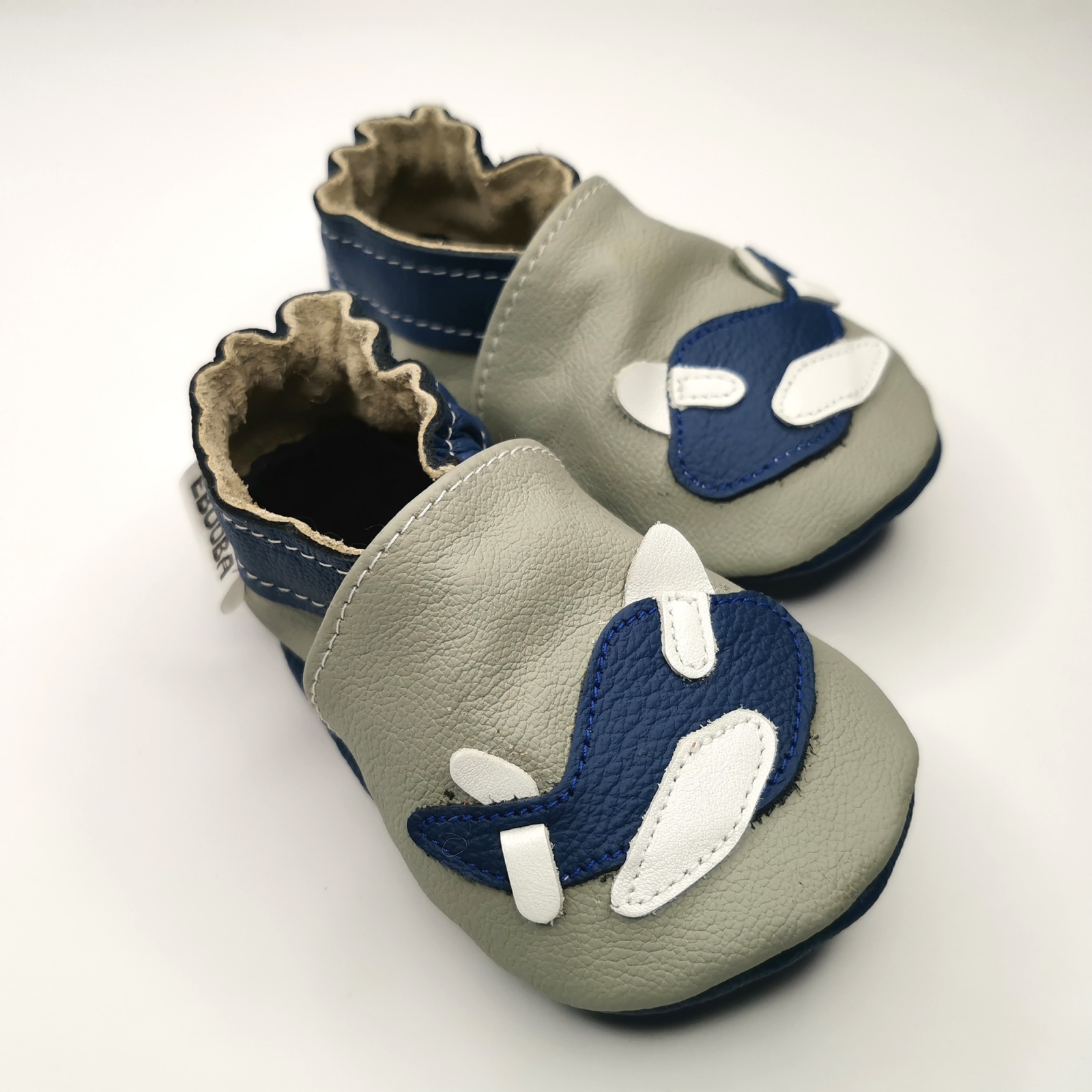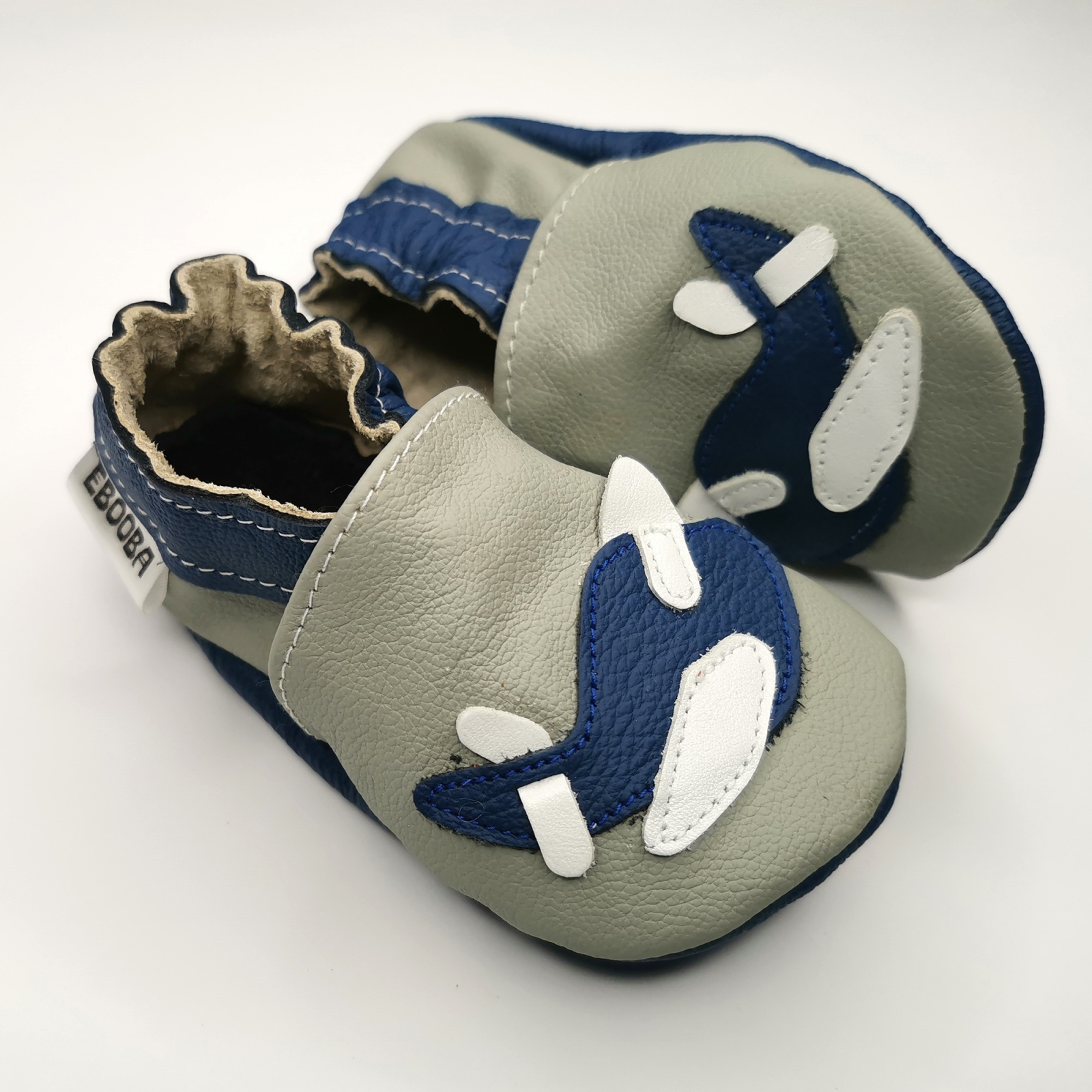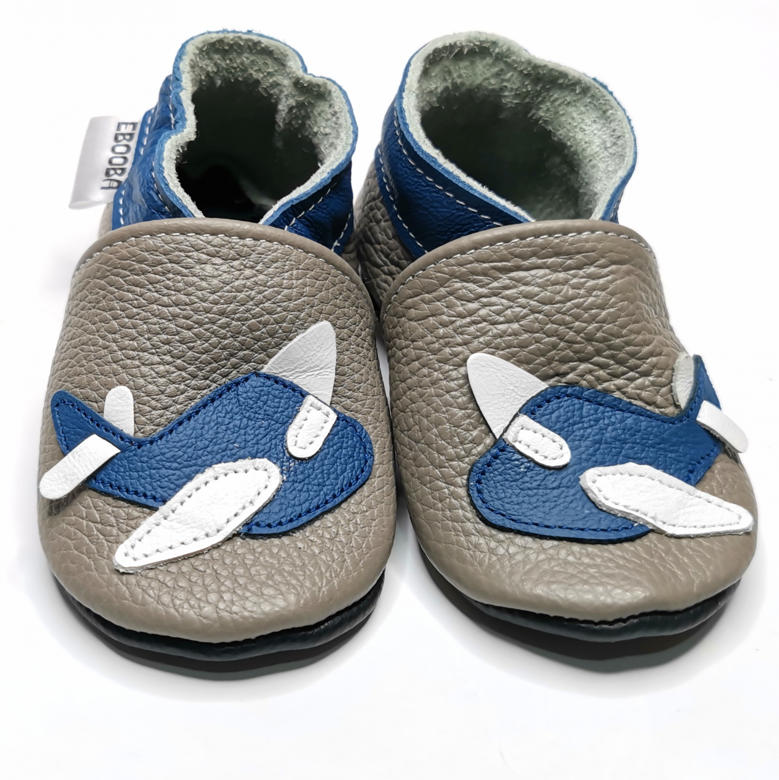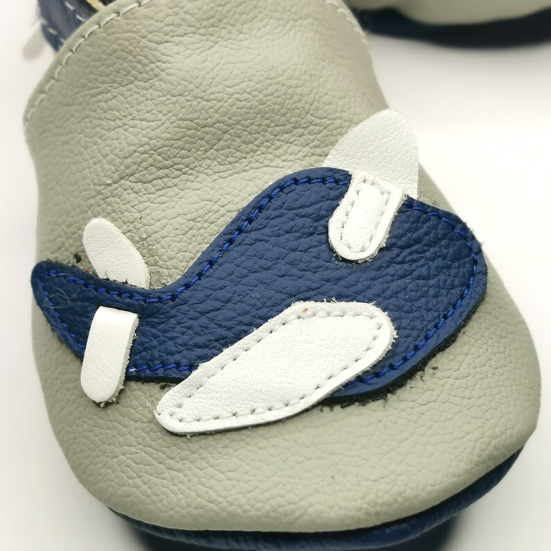 Botosei din piele naturala, cu model AVION GRI