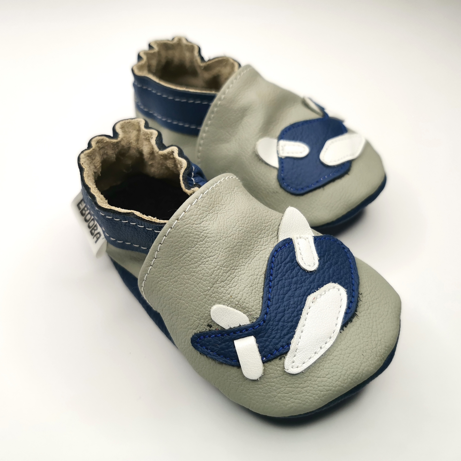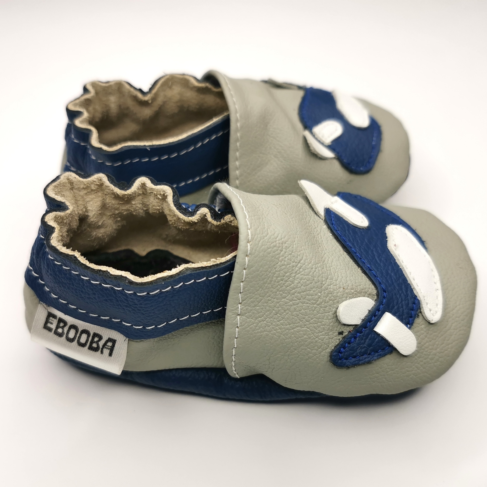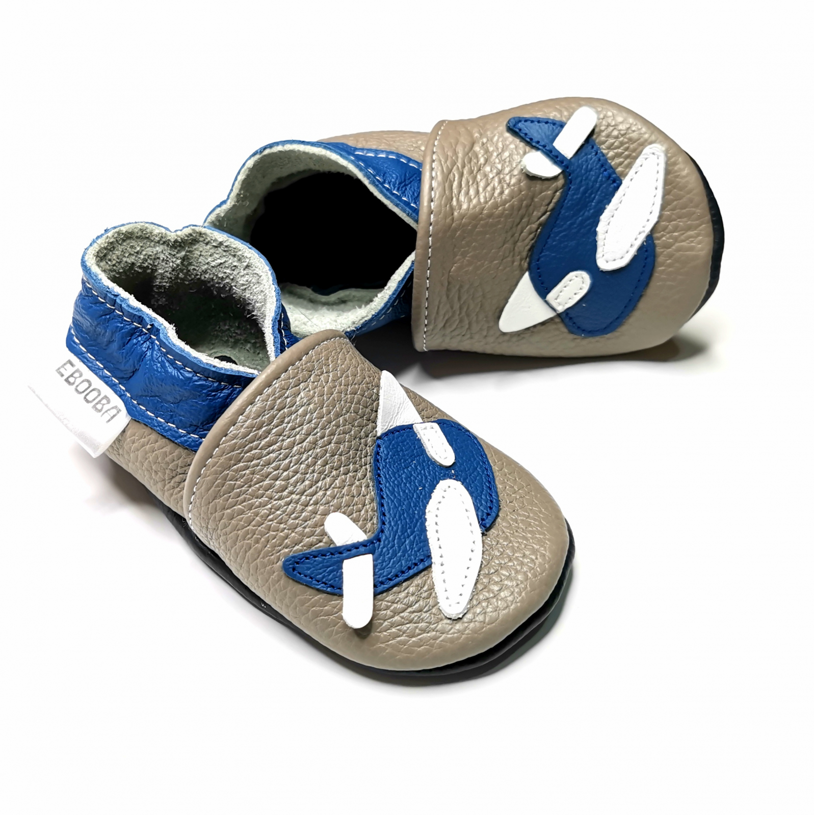 Botosei din piele naturala, cu model AVION GRI