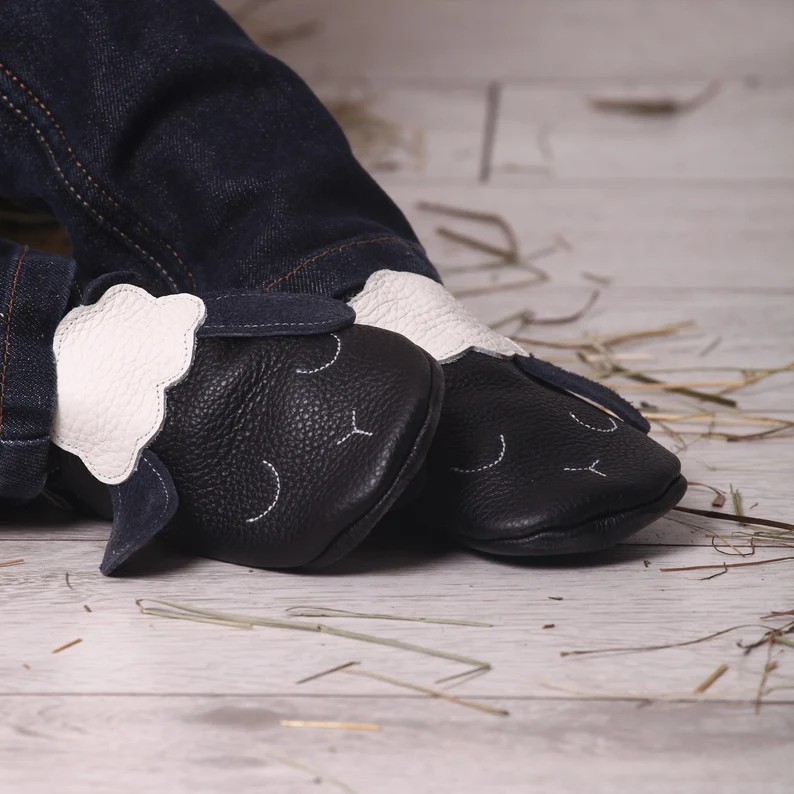 Botosei din piele naturala, cu Model OAIE NEGRU