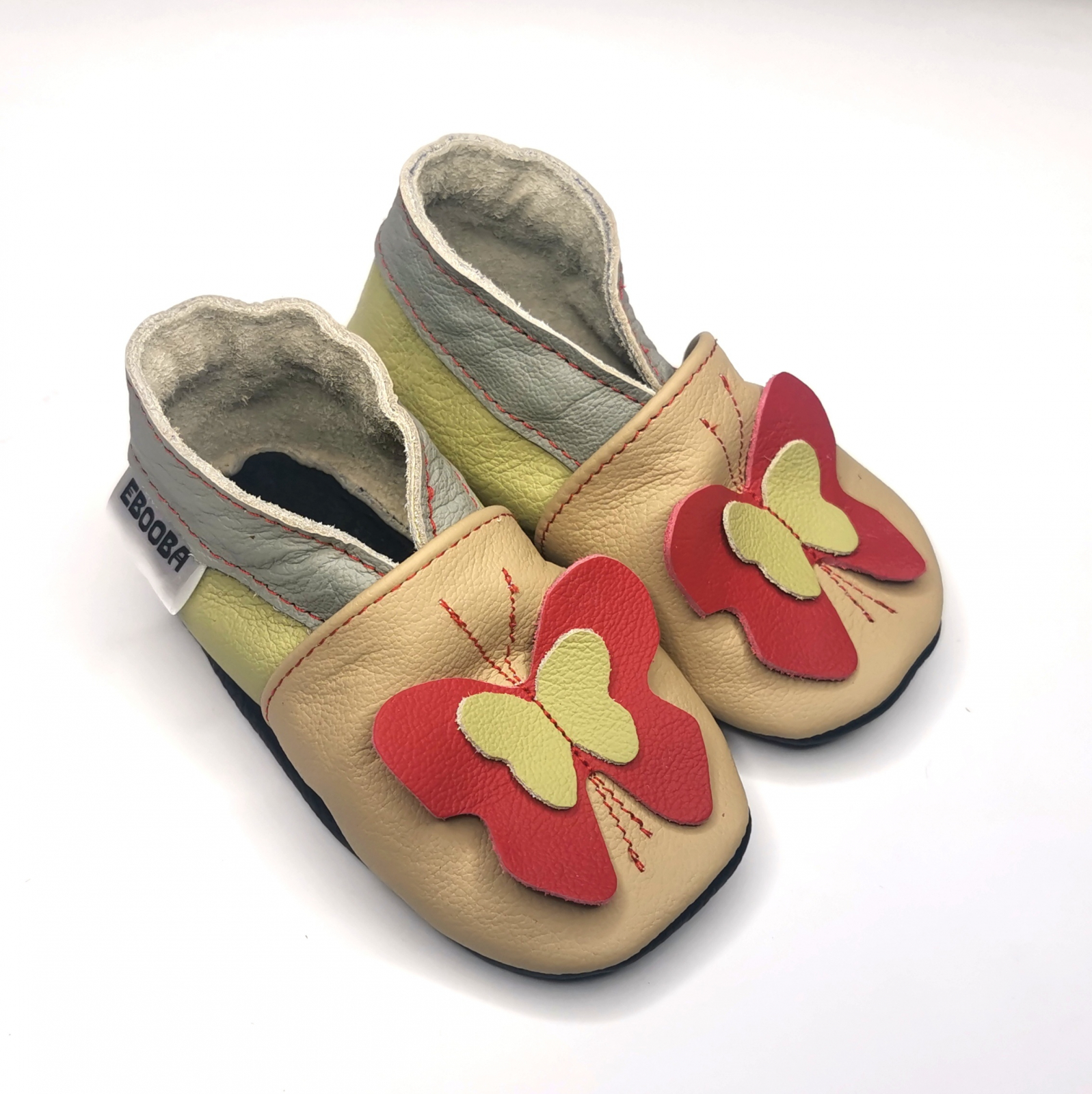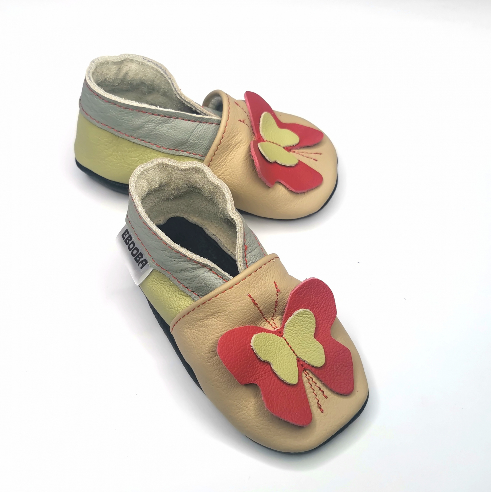 Botosei din piele naturala, cu model FLUTURE 3D BEJ